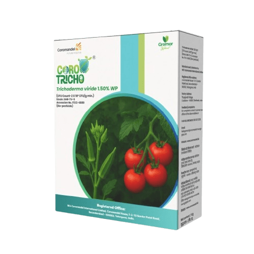 CoroTricho-H (Trichoderma harzianum 1.0% WP) is a powerful bio-control fungus that protects crops from soil-borne diseases while enhancing plant growth and resilience.